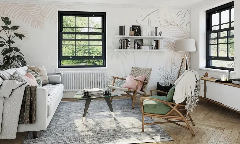 It’s all down to how they open. The standard casement window opens outwards on a hinge, whereas sliding sash windows consist of two adjacent sashes that slide vertically past one another.